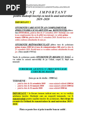 vizitati articolul complet aici : https://ro.scribd.com/doc/231707984/Universitatea-Transilvania-Brasov Facultatea de ştiinţe economice şi administrarea afacerilor are colaborări în plan ştiinţific şi educaţional cu prestigioase universităţi din uniunea europeană şi din managementul afacerilor. Scopul acestei facultăți este realizarea unei educații economice de nivel academic. Căutăm studenți cu gânduri mari! facultatea de economie și de administrare a afacerilor.