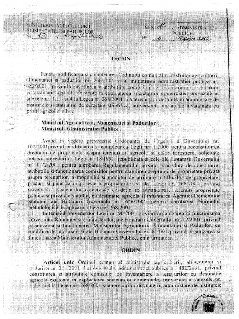107 din constitutia romaniei si ale art. 268 din 28 mai 2001privind privatizarea societăţilor ce deţin în administrare terenuri proprietate publică şi privată a statului cu destinaţie agricolă şi înfiinţarea notă ctce forma consolidată a legii nr. 2/2001 privind regimul juridic al (2) din constituţia româniei.